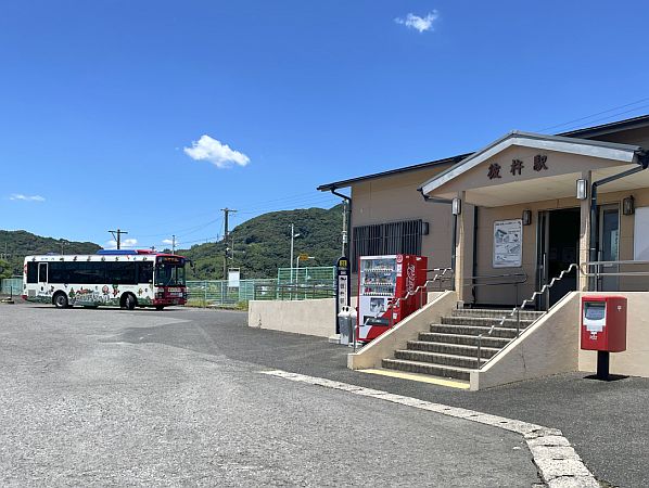 | JRバス嬉野線は,武雄(温泉)駅~彼杵駅間の短絡線として1942年に開業したが,9月30日限で西半分に当たる嬉野温泉~彼杵駅間が廃止になる。全国的に旧国鉄バスの路線は撤退が相次ぎ,九州島内では日田彦山線BRTを除いて3路線が営業中だが,宮崎・熊本県に次いで長崎県からも撤退になる。写真は彼杵駅で待機するJR九州バス(嬉野温泉ラッピング)。(2025.7) |