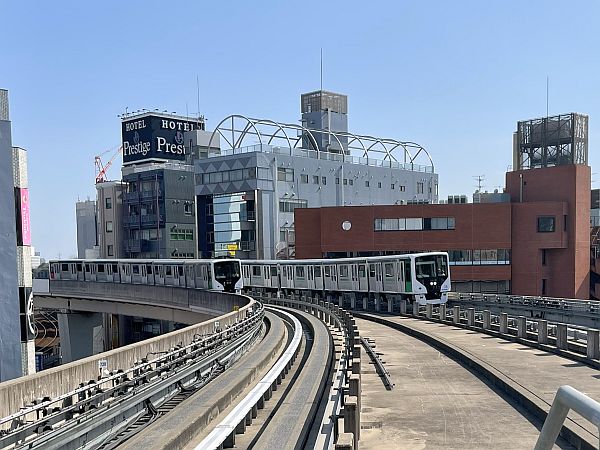 | 西日暮里駅南方で離合する日暮里・舎人ライナーの330形第31編成と35編成。側方案内式の日本標準型AGTで,東京圏3路線の内では最も新しい。330形はゆりかもめ7300形とほぼ同形で,車長9mの2扉車だが,ゆりかもめより短い5両編成の為か,東京圏最混雑線区の常連。名古屋・東山線もそうだが,費用面から控え目の規格を選ぶと,需要増に対応できない例と言えよう。(2024.3) |